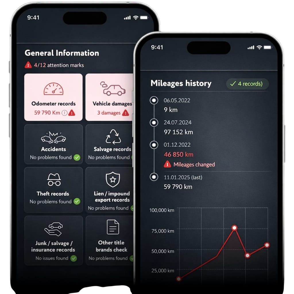 Even in such cases, our reports provide all available details, including specifications, title status, accident history, and ownership records. This ensures you receive a reliable overview of the vehicle’s history before making a purchase.